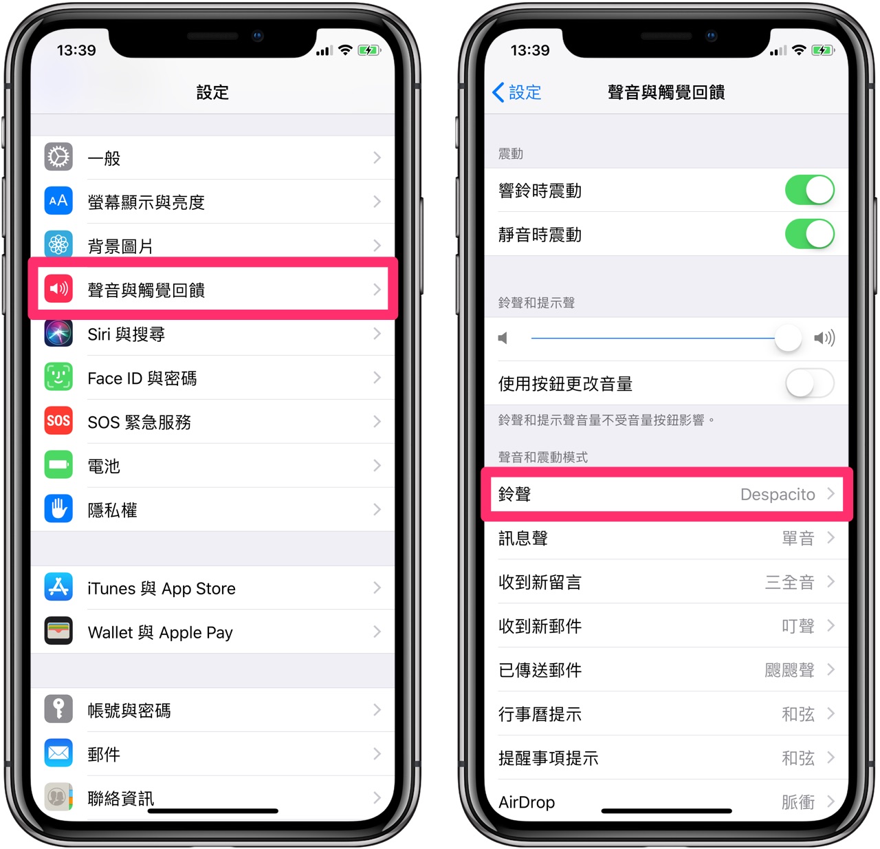按下【確定】並同步後,來到 iPhone 的「設定」>「聲音與觸覺回饋」>「鈴聲」。
