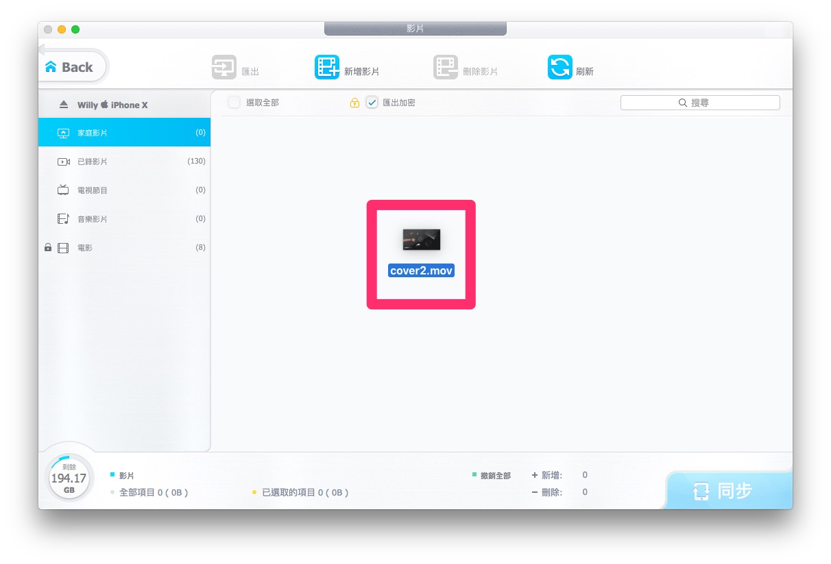 如果是 iPhone 本身就可以吃的檔案就可以直接同步,如果是像 MKV、AVI…等這些檔案,就會出現【不支援的格式】提示,只要按下【轉檔】,神奇的事情就發生了。