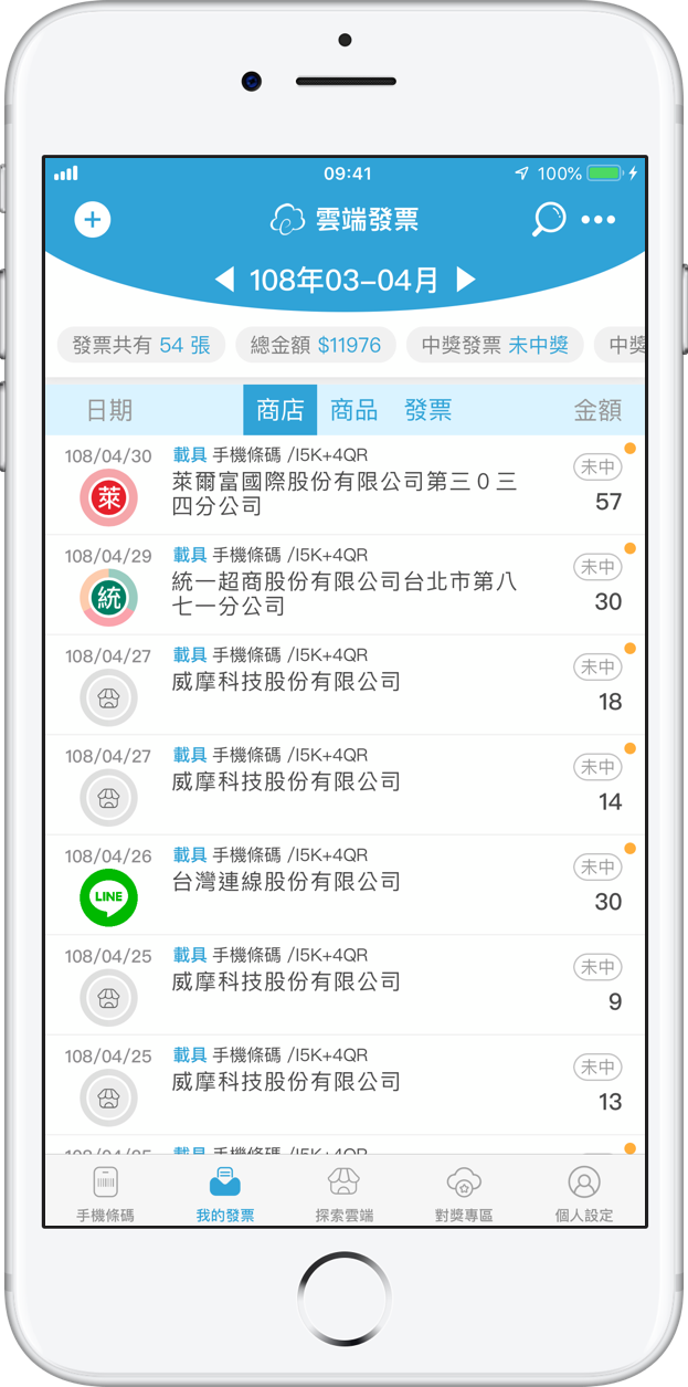 結帳時刷過條碼,過一段時間後,就能在「我的發票」畫面中,看到所有發票的詳細資訊了,包括本期的發票張數、總花費金額、有無中獎等…,這些可比紙本要清楚很多,也沒有遺失的問題了!