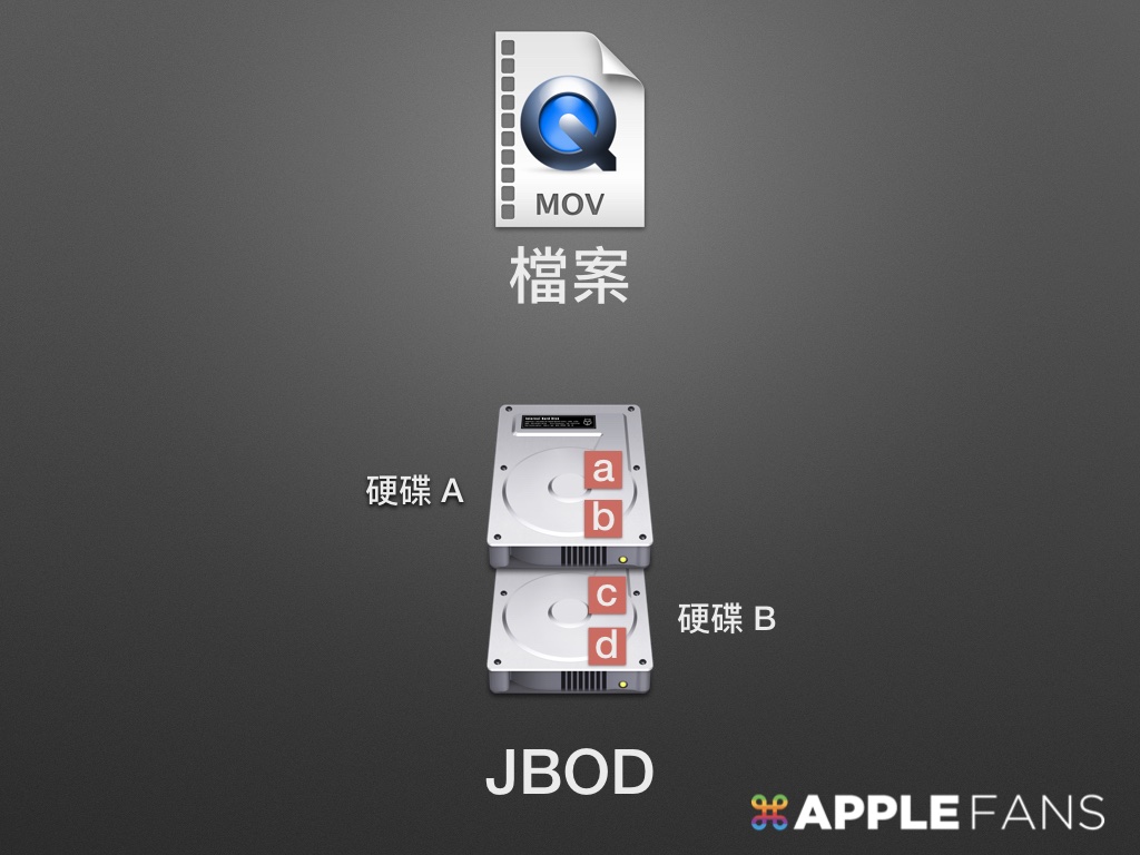 而且 JBOD 資料的存放的方式是由第一顆硬碟開始依序往後放,如果其中一顆硬碟壞了的話,基本上裡面的資料也就沒救了。