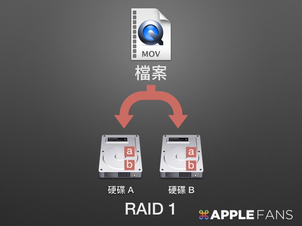 簡單來說,RAID 1 就是把資料同時丟進兩個硬碟裡,確保兩個硬碟要都隨時存著所有的資料料。