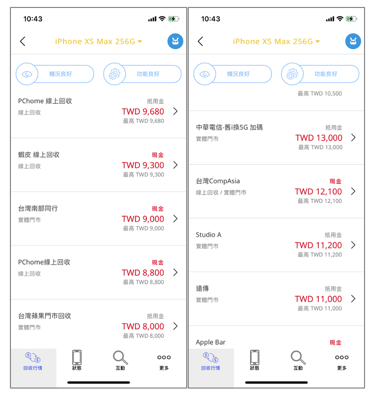 我們實際就來以 iPhone XS 256GB 來查詢,在手機機況不同以及個人賣機心態的各情況下,提供你到哪個通路進行二手機的回收,會是最好的選擇吧!