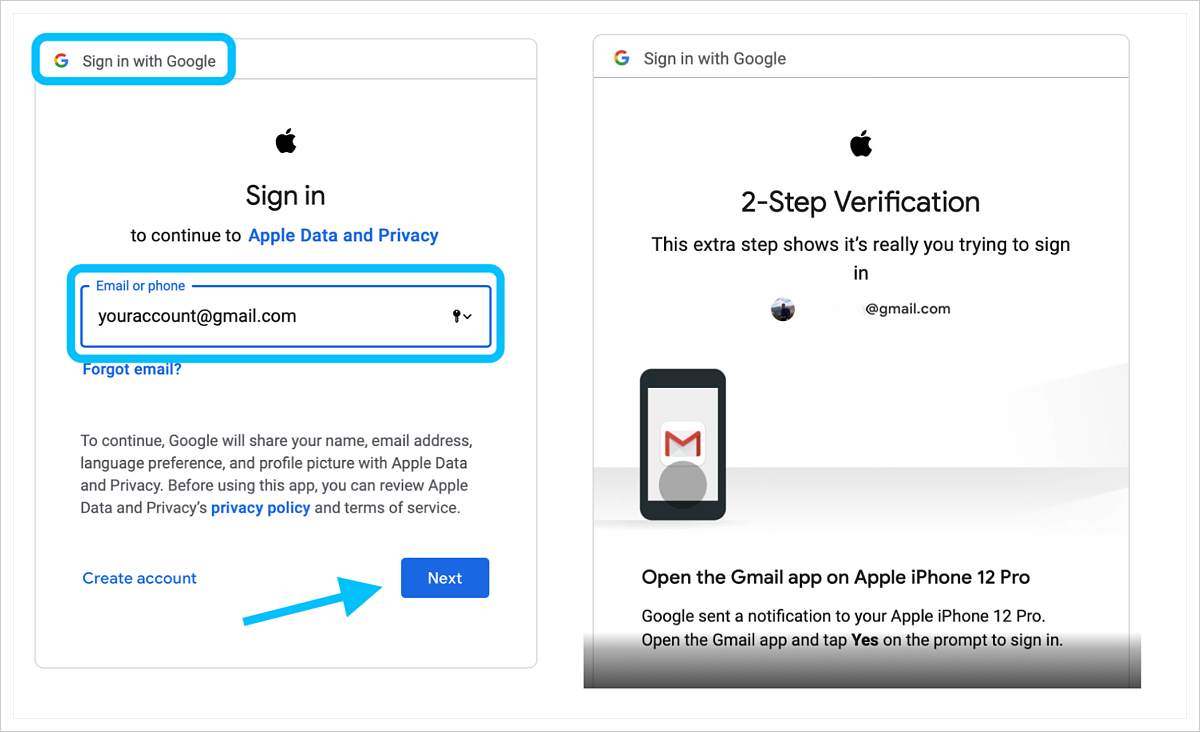 - 登入到你想要將 iCloud照片/影片傳輸到的 Google 帳戶