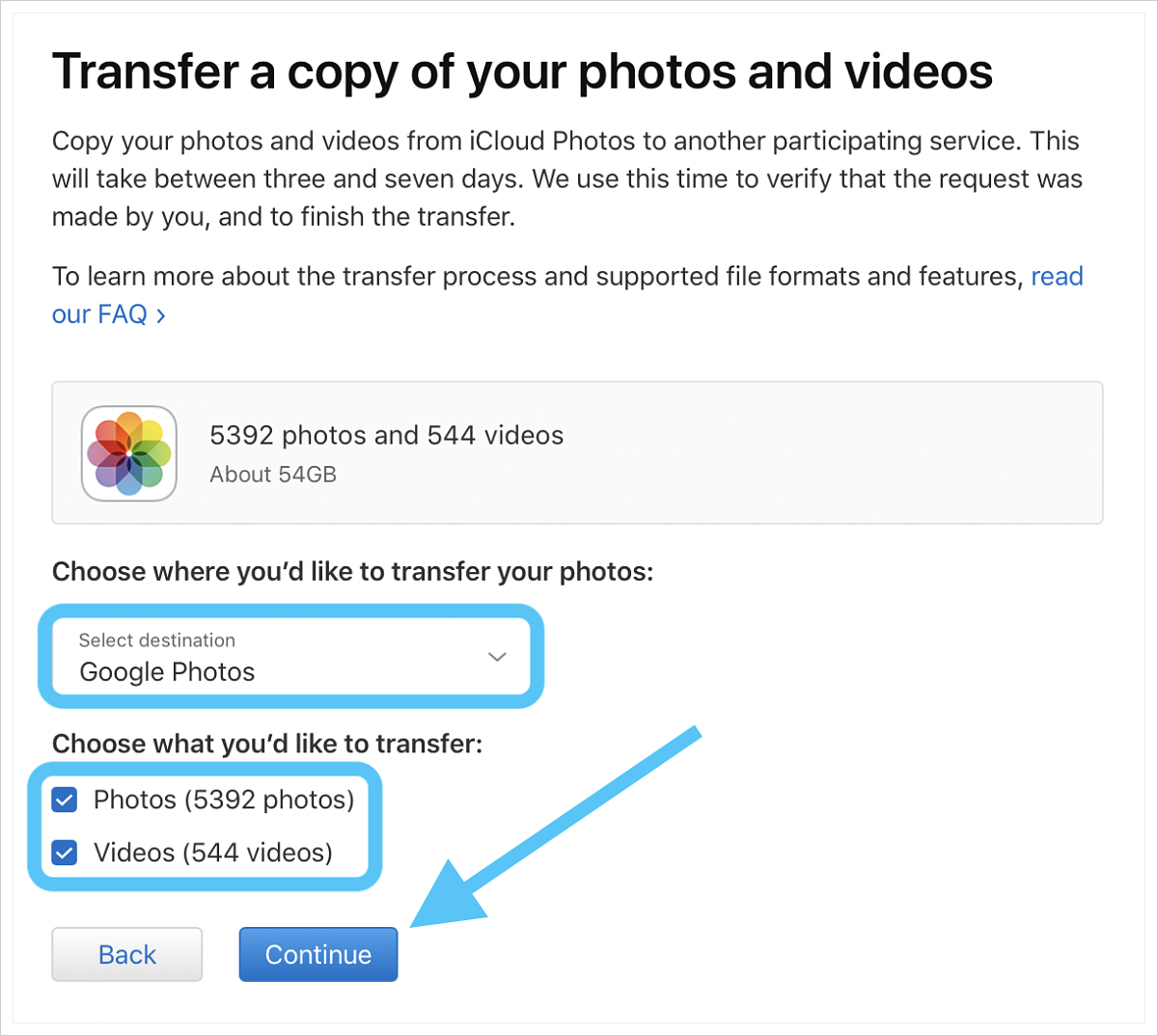 Apple 表示,轉移過程需要 3 到 7 天,完成後你會收到一封確認電子郵件。