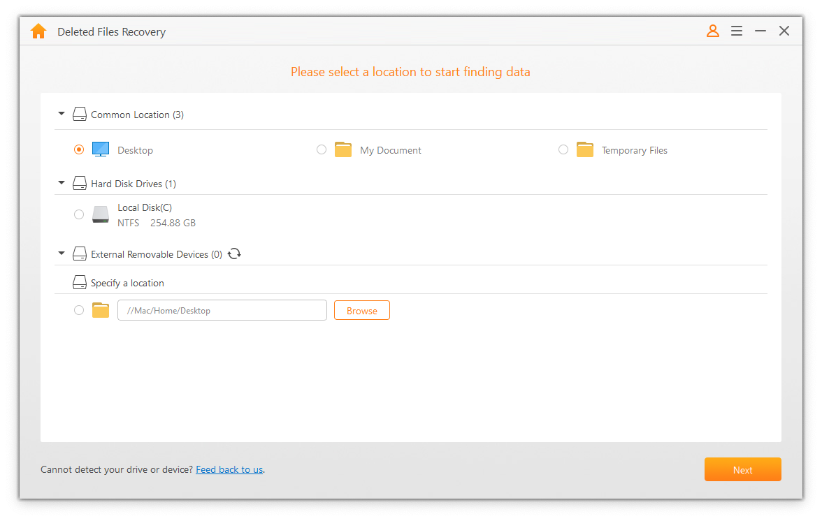 選擇不小心刪除的檔案原本的所在位置或路徑,如「桌面」或是「文件」資料夾。