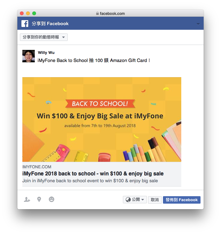 請別忘了設為「公開」再按下【發佈到 Facebook】哦~