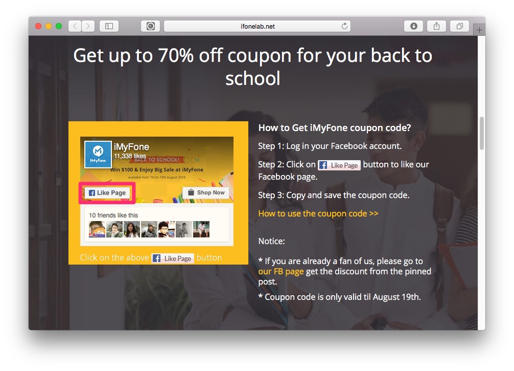 除了 Back To School 活動外,iMyFone 系列也全面有 Back To School 優惠,只要幫 iMyFone 粉絲團按個讚,就可以獲得優惠碼,折扣最多可打到 3 折,這種超好康的優惠可遇不可求,機會難得,大家可別錯過了哦~