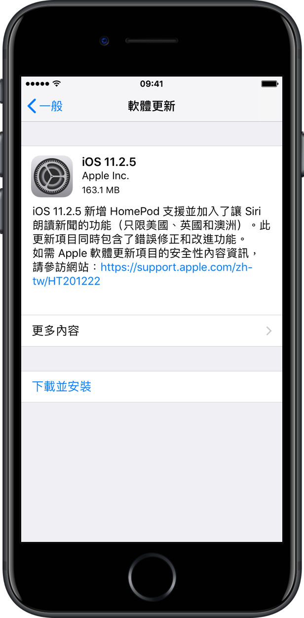 iOS 11.2.5 新增 HomePod 支援並加入了讓 Siri 朗讀新聞的功能(只限美國、英國和澳洲)。此更新項目同時包含了錯誤修正和改進功能。