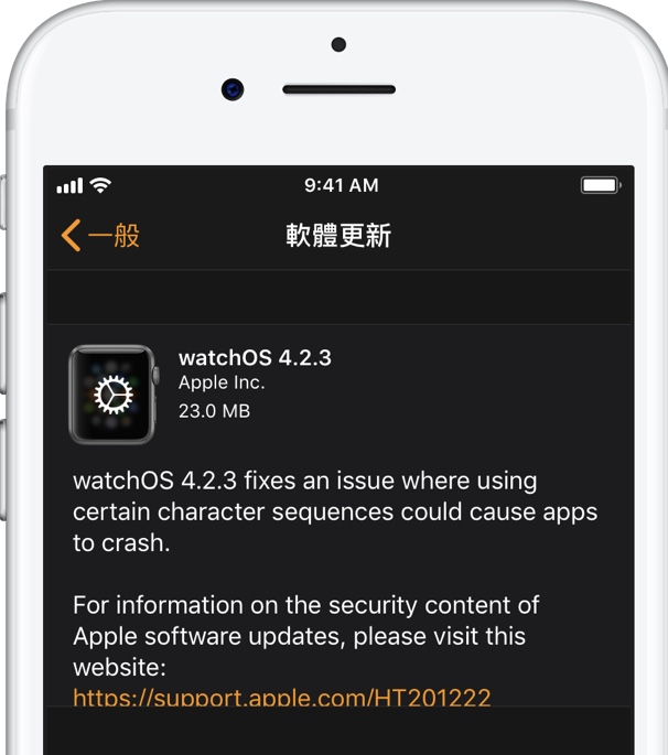 同一時間,watchOS 4.2.3 也一起推出,主要也是修復相同的問題,建議所有用戶都升級。