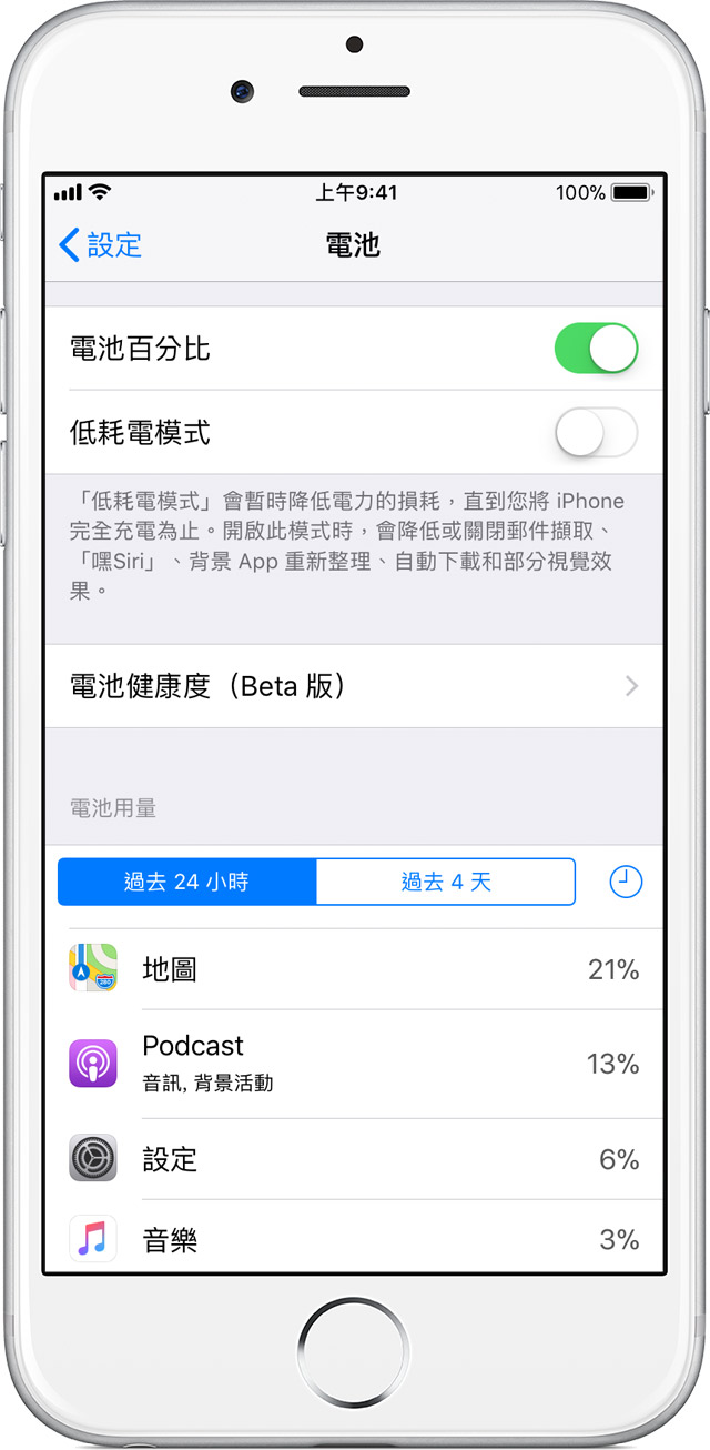 iPhone 6 和後續機型在 iOS 11.3 中進入「設定」>「電池」>「電池健度度(Beta版)」,可顯示電池健康狀態並建議是否需要更換電池。