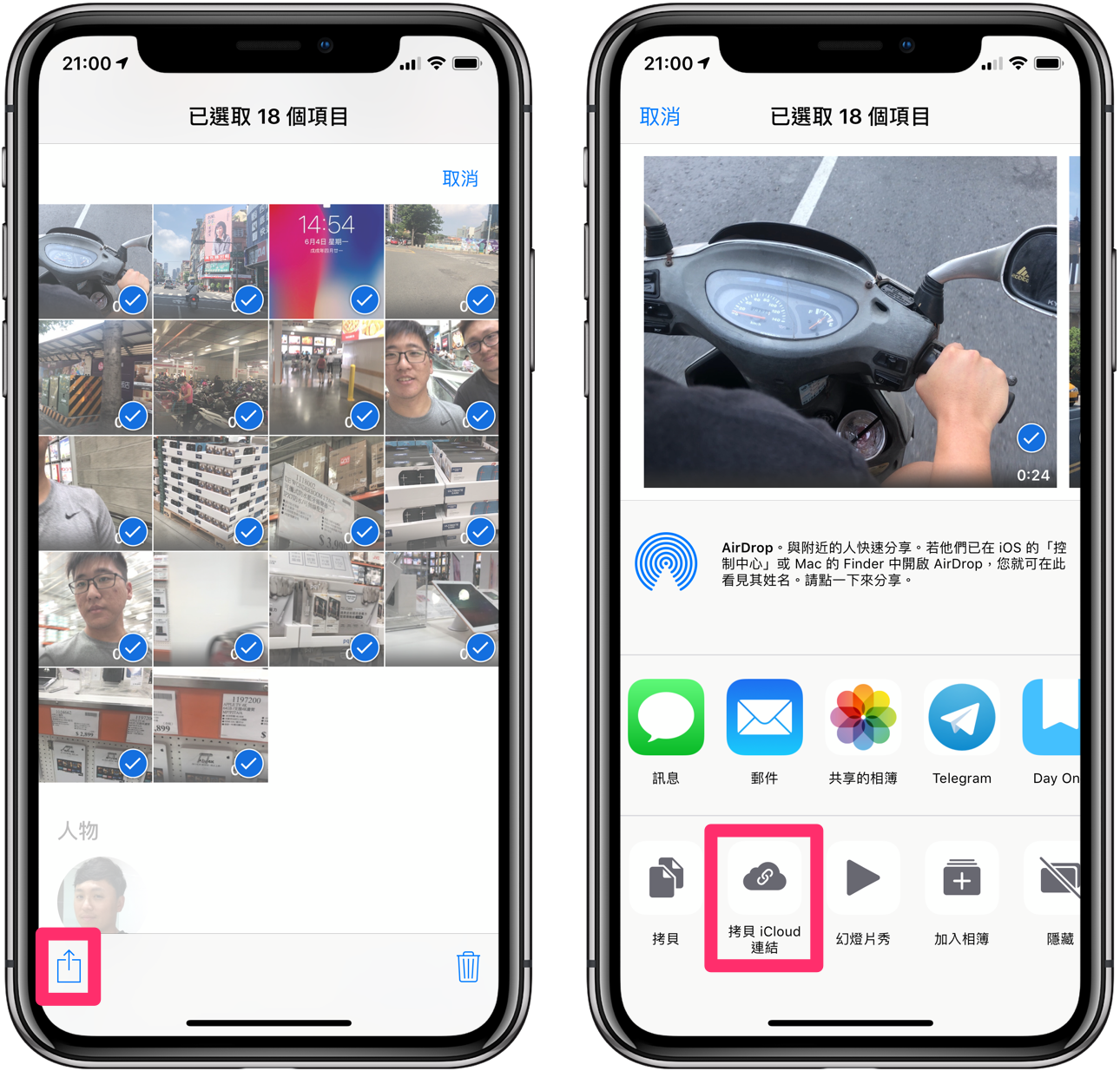 透過這個方式分享照片,比 AirDrop 還要方便,不需要花時間將照片或影片傳給對方,也不需要一定得在身邊,還可以同時快速與多人分享,真的是一個超棒的新功能。