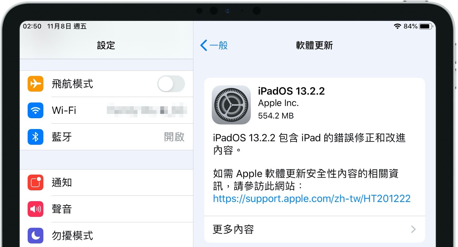 iPadOS 13.2.2 包含 iPad 的錯誤修正和改進內容。此更新項目: