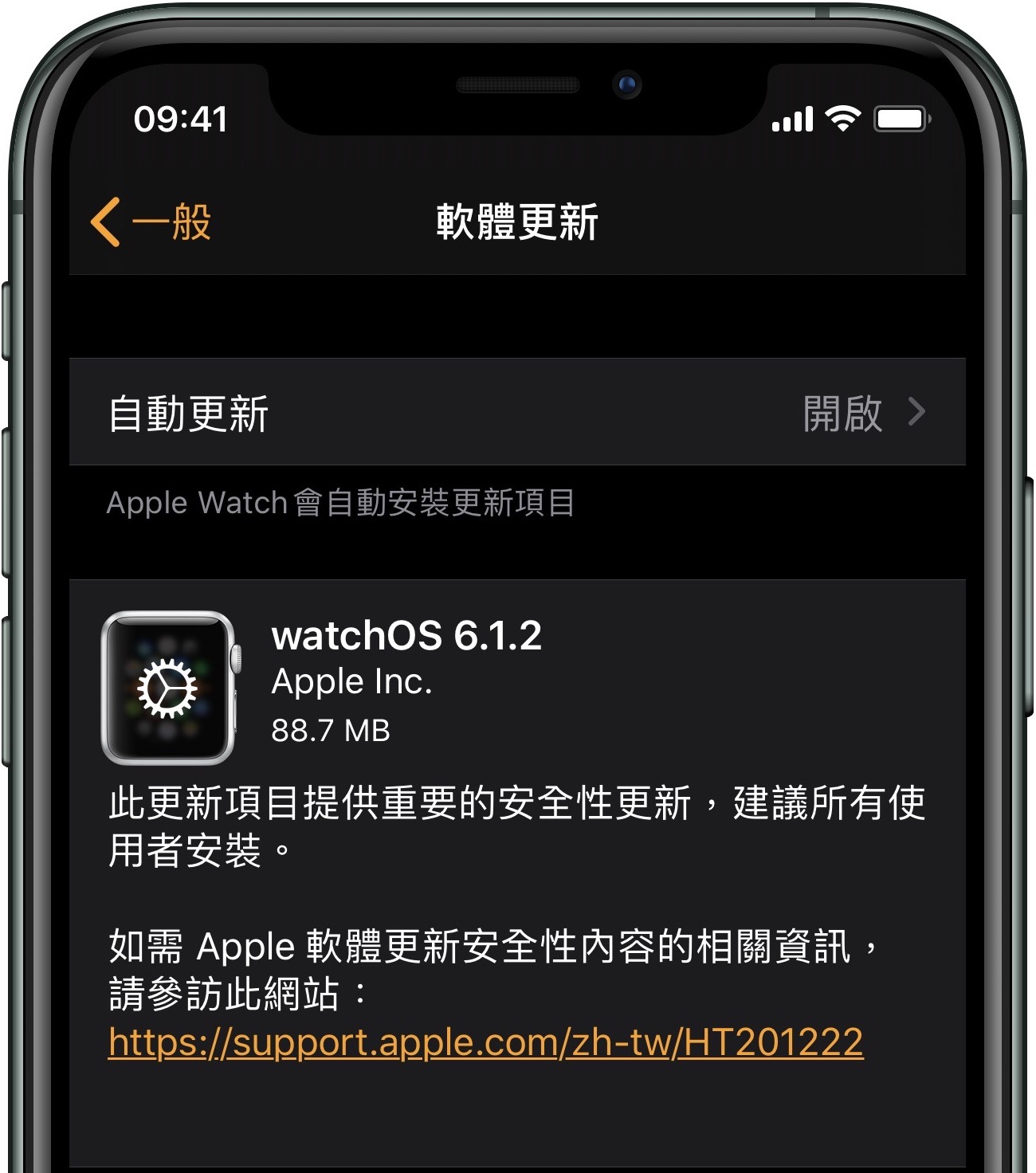 如需此更新項目的安全性內容的詳細資訊,請參訪:https://support.apple.com/zh-tw/HT201222
