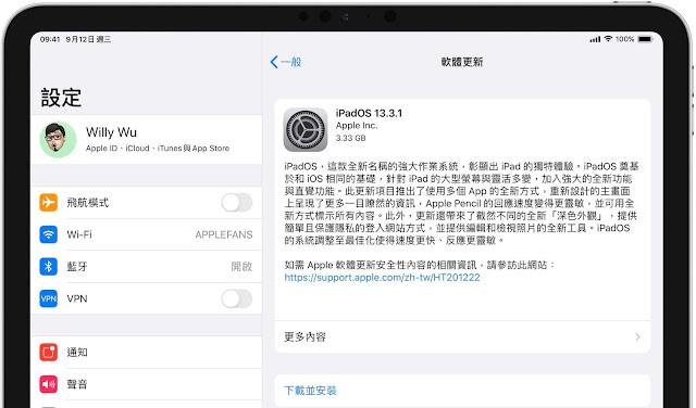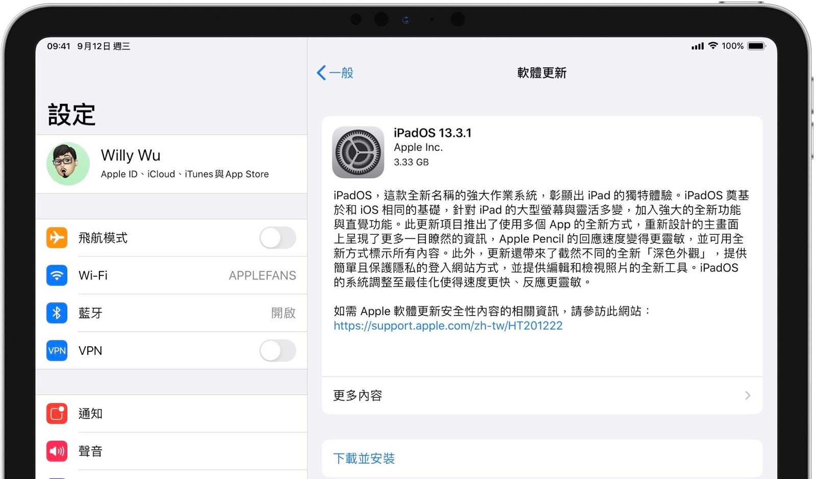 iPadOS 13.3.1 更新 包含錯誤修正和改進內容。此更新項目: