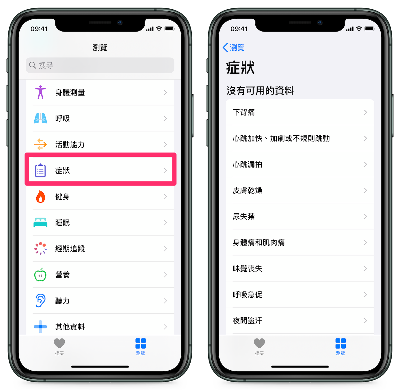 「健康」App 增加「症狀」類別