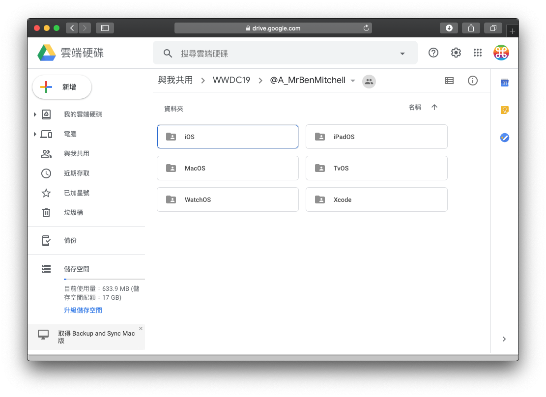 進入網友 @A_MrBenMitchell 的 Google Drive。