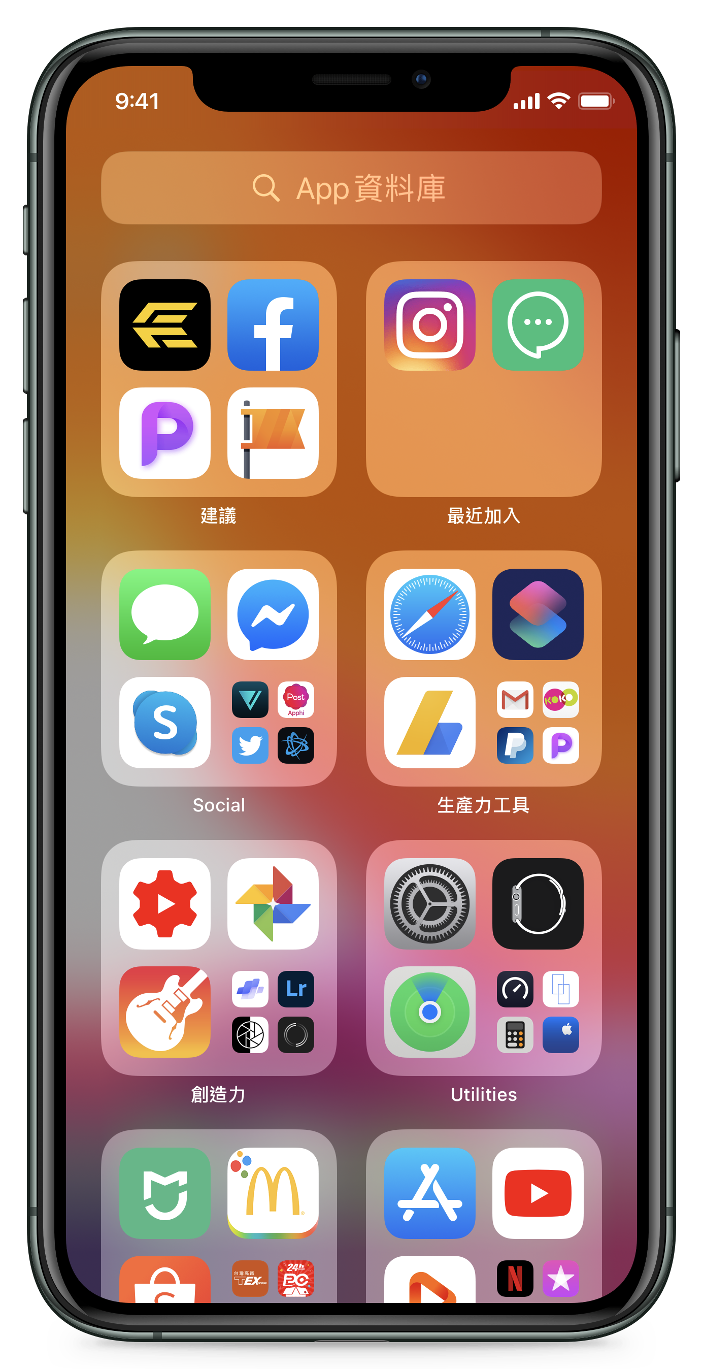 全新的 App Library 會自動幫你做好 App 分類,讓你可以一目瞭然,而且最常用的 Apps 圖示也會自動放大,方便你可以點一下就開啟。