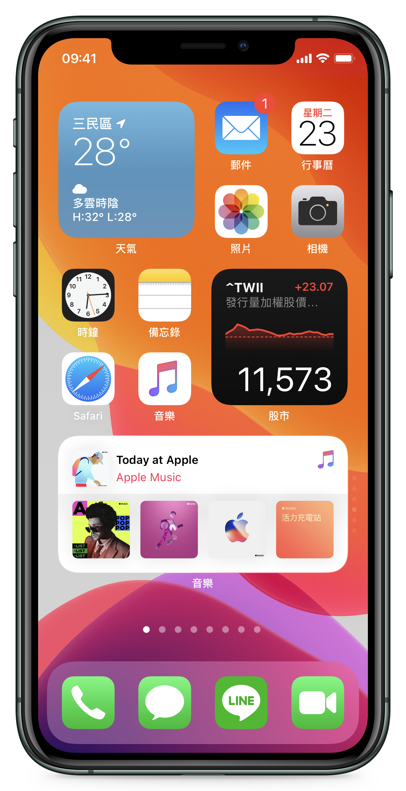 - 重新設計的 Apple 小工具包含:天氣、時鐘、行事曆、News、地圖、健身、照片、提醒事項、股市、音樂、TV、提示、備忘錄、捷徑、電池、螢幕使用時間、檔案、Podcast 和 Siri 建議