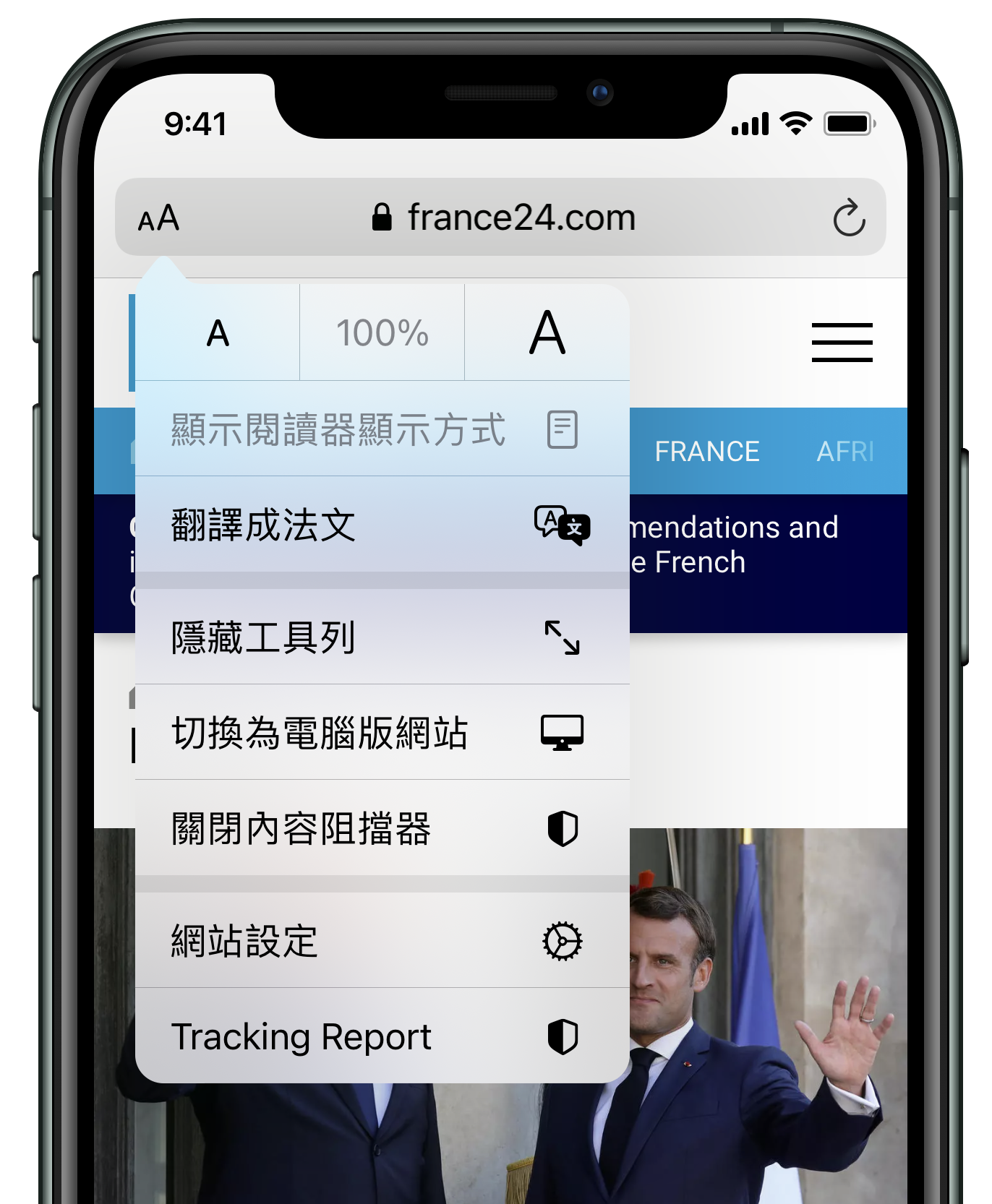 最主要就是在 Safari 中內建了「翻譯」功能,以後可以直接在 iPhone 上將網頁轉換為想要的語言,不必再回電腦了。