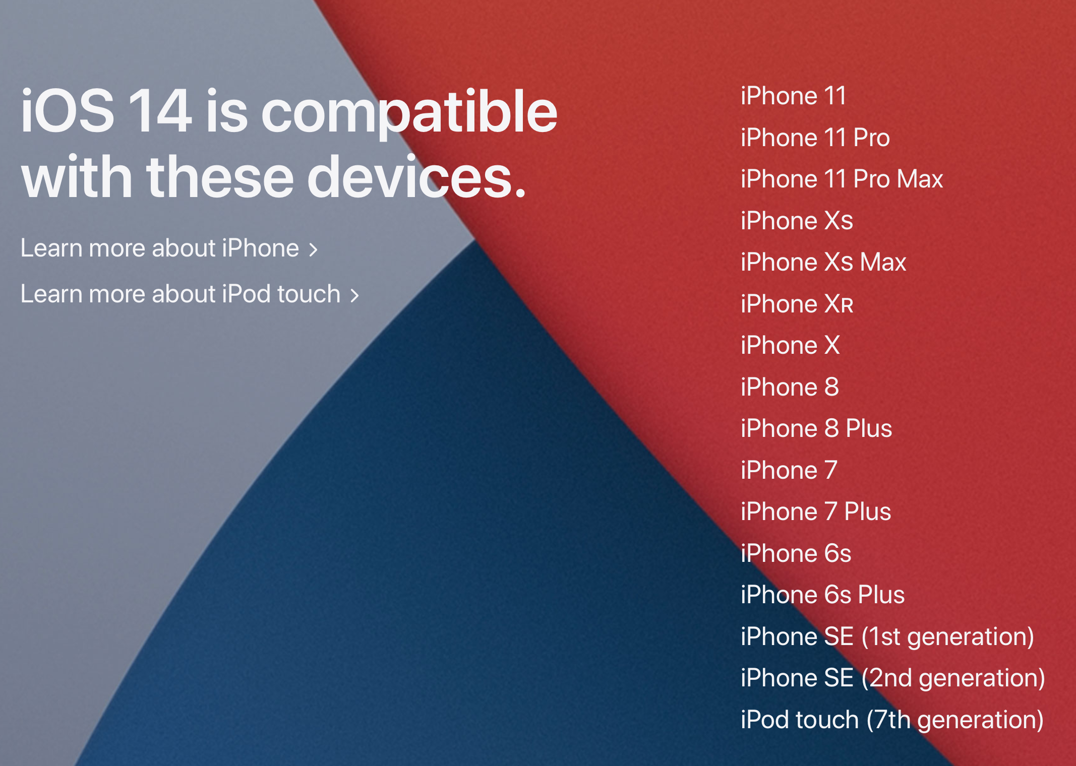 這次可以升級至 iOS 14 的裝置跟 iOS 13 相同,最舊的是 iPhone 6s,也就是說只要是可以升級到 iOS 13 的裝置皆可以升級至 iOS 14 唷!