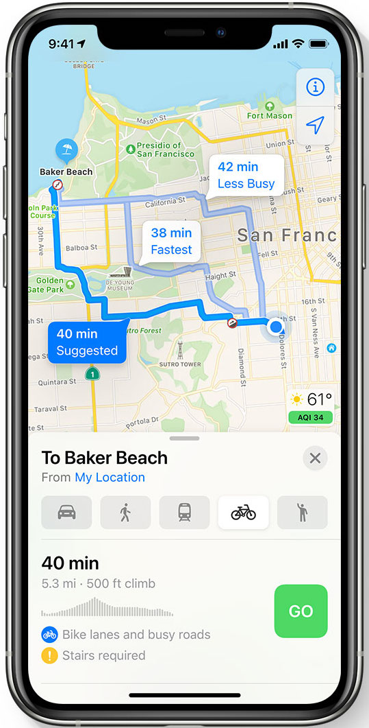 iOS 14 的地圖新增了「單車模式」可以選擇,會幫你以自行車方便的小路來規劃路徑,也加入「電動車導航」功能,將會以充電站來做為旅行的路徑規劃,可惜台灣都尚末支援。