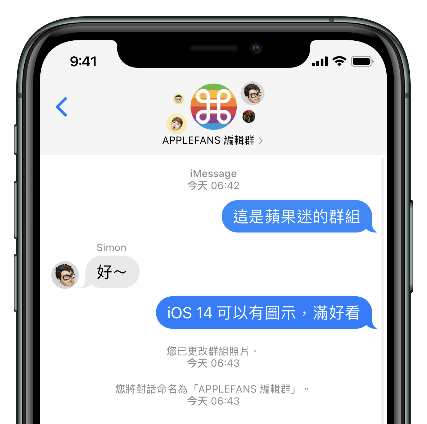 群組聊天室終於以用照片、Memoji,甚至 emoji 來做為群組大頭照。