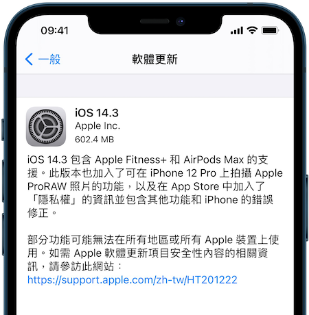 稍早時間 iOS 14.3 更新 正式推出,現在使用者可以從「設定」>「一般」>「軟體更新」中,透過 Wi-Fi 或 5G 進行升級。