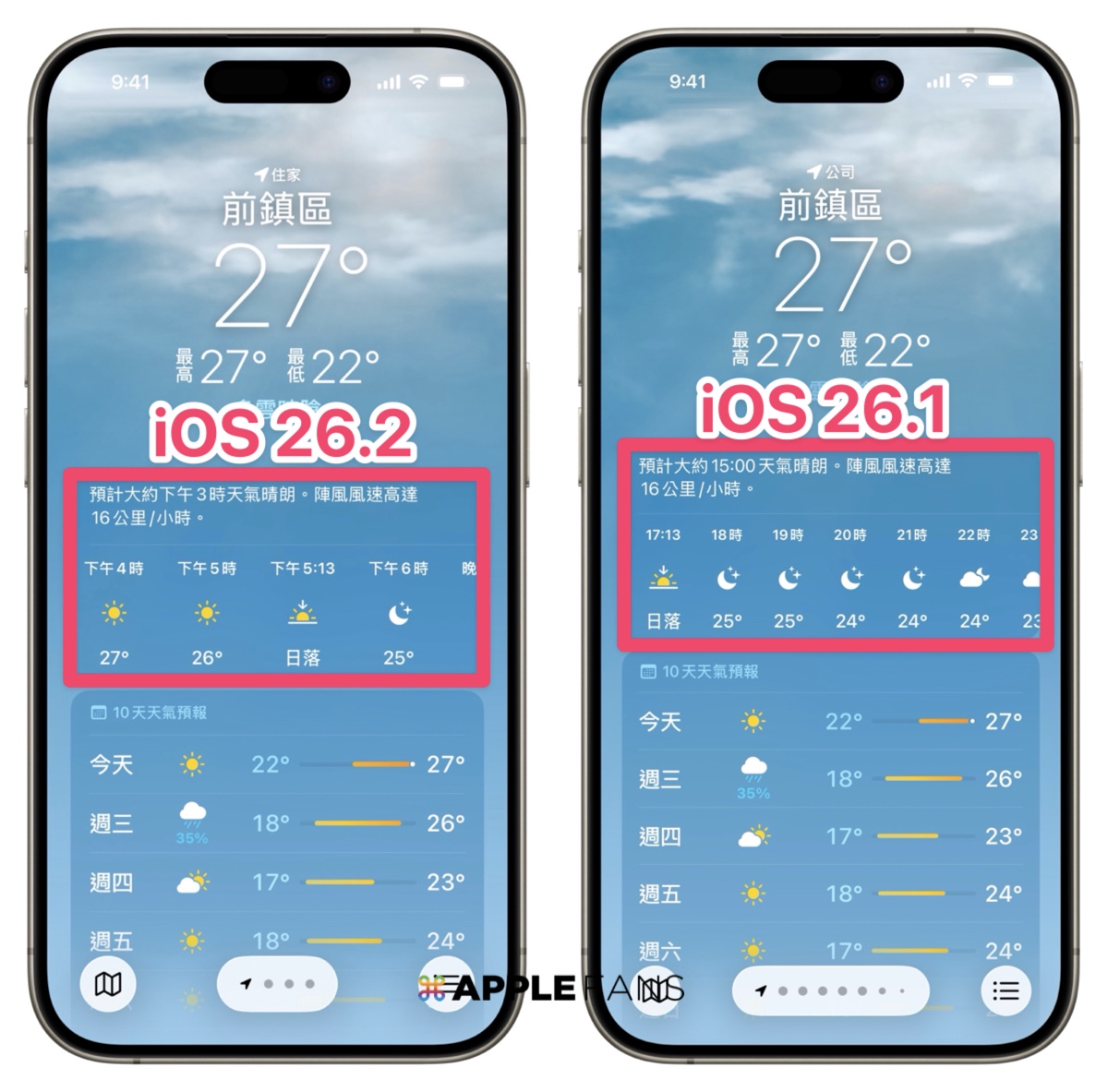 升級至 iOS 26.2 之後,你的天氣 APP 的提示說明,會裡 17 時改成「下午」 5 時這種提示。