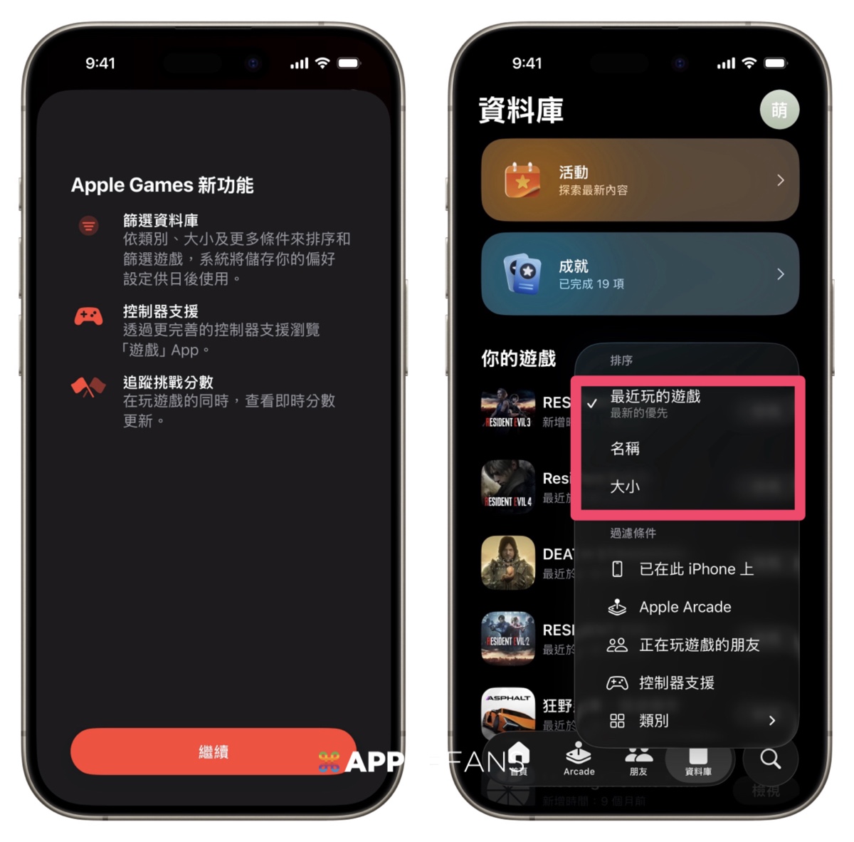 原本遊戲 App 只有名稱與最近加入,現在新增依「檔案大小」排序遊戲的功能,還有其他更新: