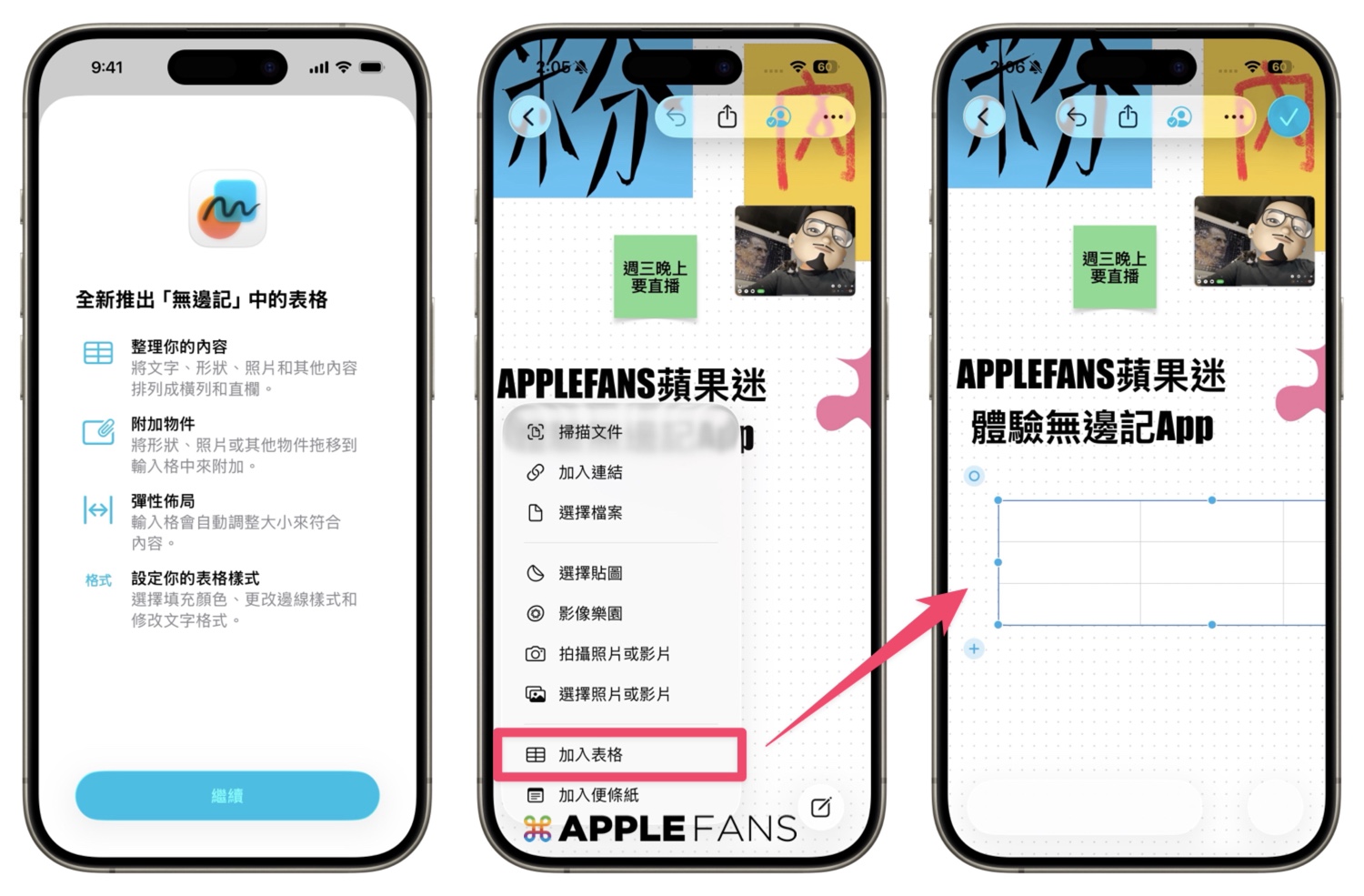 ❼ 無邊記 App 新增「表格」功能
