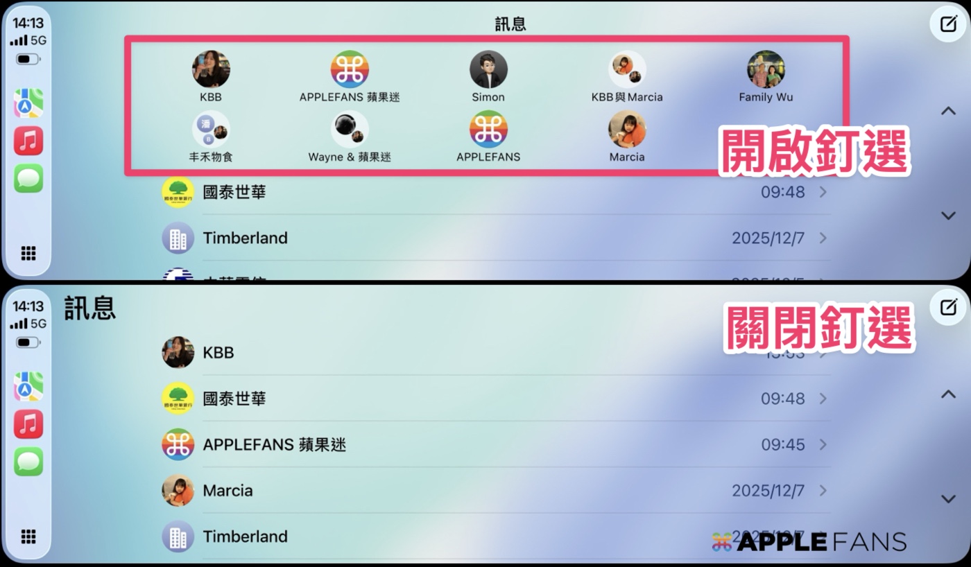 ❿ CarPlay 可關閉「釘選訊息」