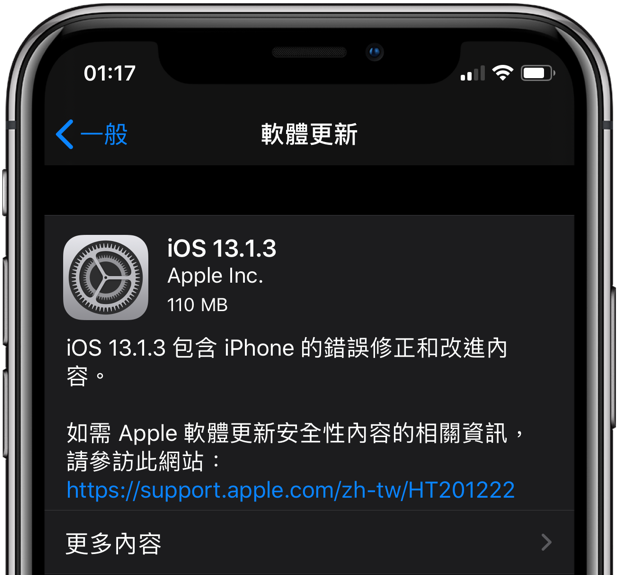 iOS 13.1.3 包含 iPhone 的錯誤修正和改進內容。此更新項目: