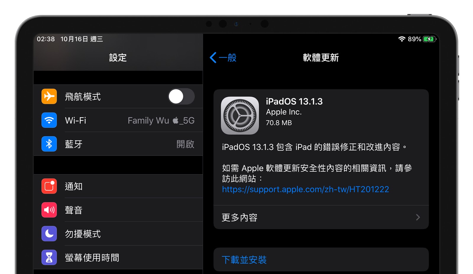 iPadOS 13.1.3 包含 iPad 的錯誤修正和改進內容。此更新項目: