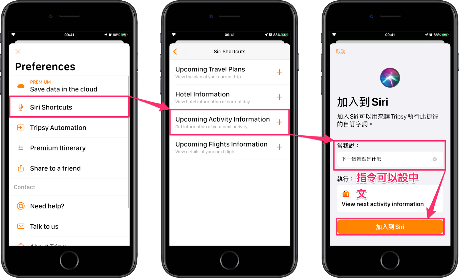 進入 “Preferences” > “Siri Shortcuts” 畫面,即可加入預設的 4 種捷徑動作,分別為:
