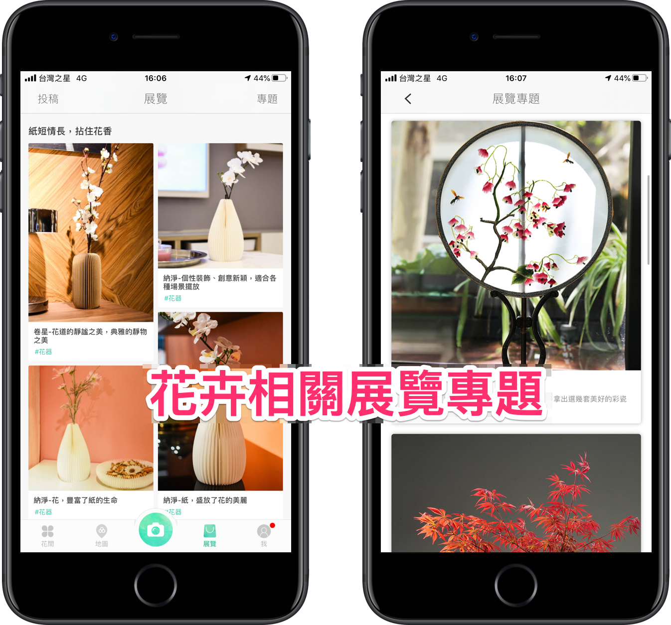 然而「展覽」這個頁面則是會展示各種花器或相關商品,點選右上角的「專題」瀏覽更多主題;但由於「形色」來是中國的 app,故這些商品的連結都不來自台灣,可能不是這麼適用。