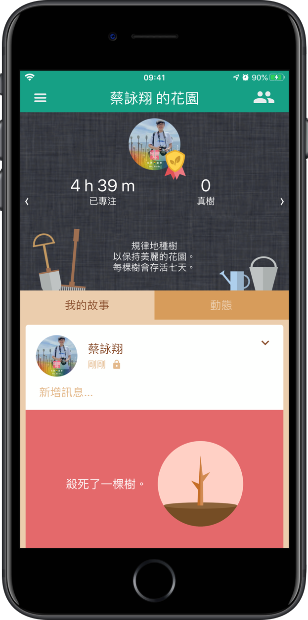 例如設定時間為 25 分鐘,而你也成功在時間內不去使用手機,成功後就會長出一棵樹,並且分享到 app 的動態牆囉!