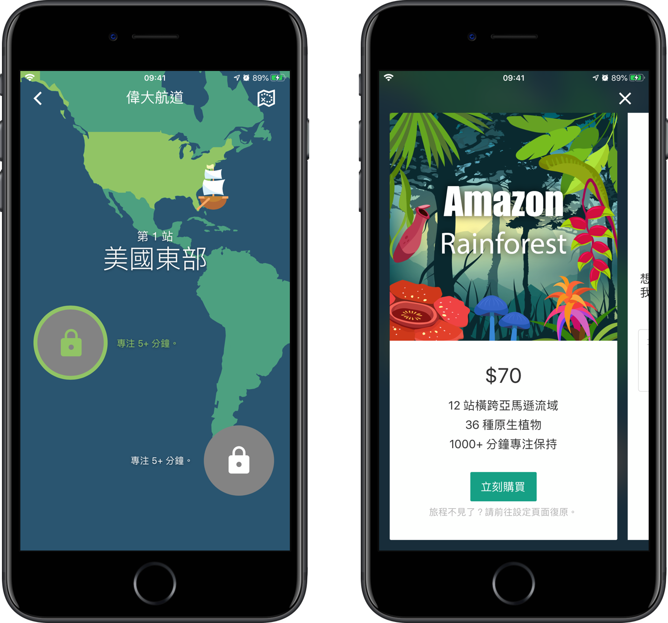 這裡面更會因為你的專注時間總長,而開放更多樹木種類、地區等等的里程碑及選擇,讓你身歷其境,種出一片屬於你的森林。