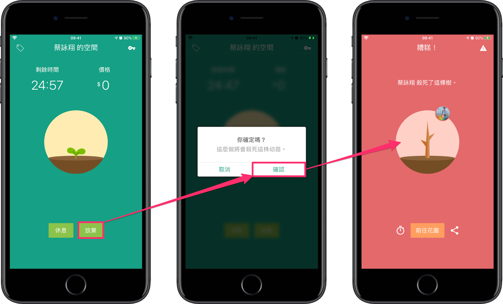 一旦失敗的話,你的樹就會立刻死亡,表示沒有完成這次的專注目標。