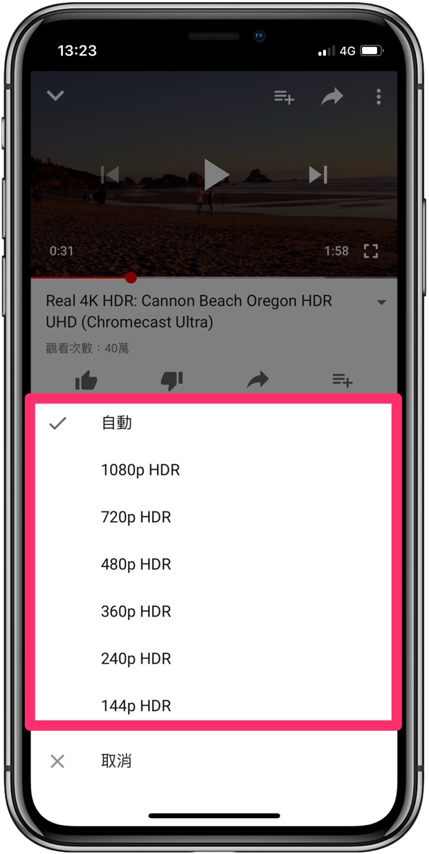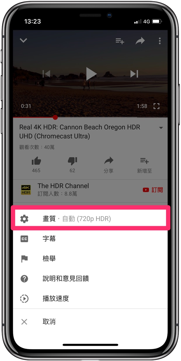 如果內部的畫質中有包含 HDR 字樣就代表可以用 HDR 觀看了,直接點選你想使用的畫質觀看就行囉!