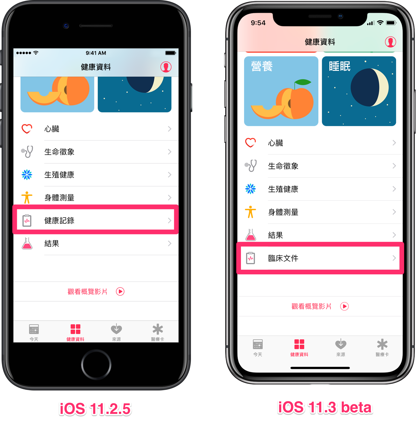 雖然在 iOS 11.3 預覽中有提到「健康記錄」,但其實在 iOS 11.2.5 中的「健康」app 就已經增加了這項功能,只是在 iOS 11.3 把「健康記錄」改成了「臨床文件」。