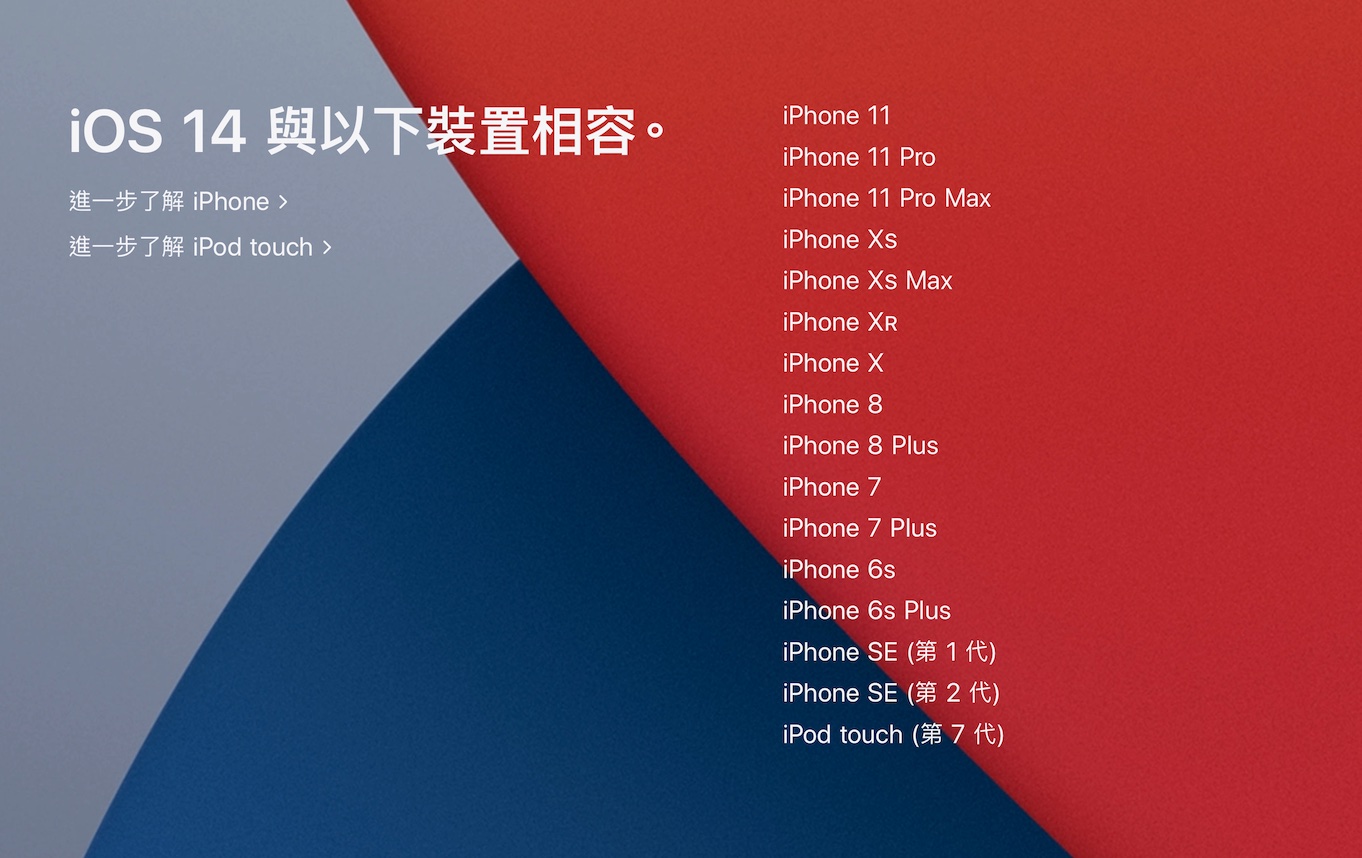 這次可以升級至 iOS 14 的裝置跟 iOS 13 相同,最舊的是 iPhone 6s,也就是說只要是可以升級到 iOS 13 的裝置皆可以升級至 iOS 14 唷!