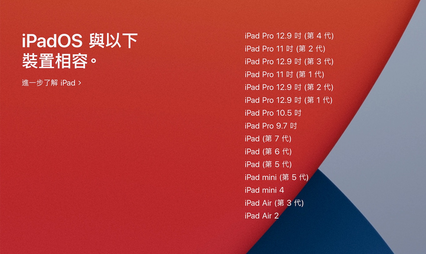 而可以升級至 iPadOS 14 的裝置也維持跟 iPadOS 13 相同,只要是 iPad Air 2 之後的機種都可以升級。