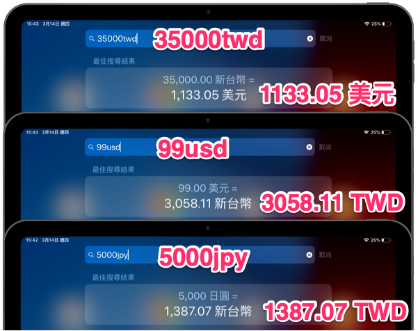 雖然還是有其限制,但以 Spotlight 作為 iPad 隱藏版計算機 ,功能已是比 iPhone 內建的計算機要來得強大,而且用途更廣。