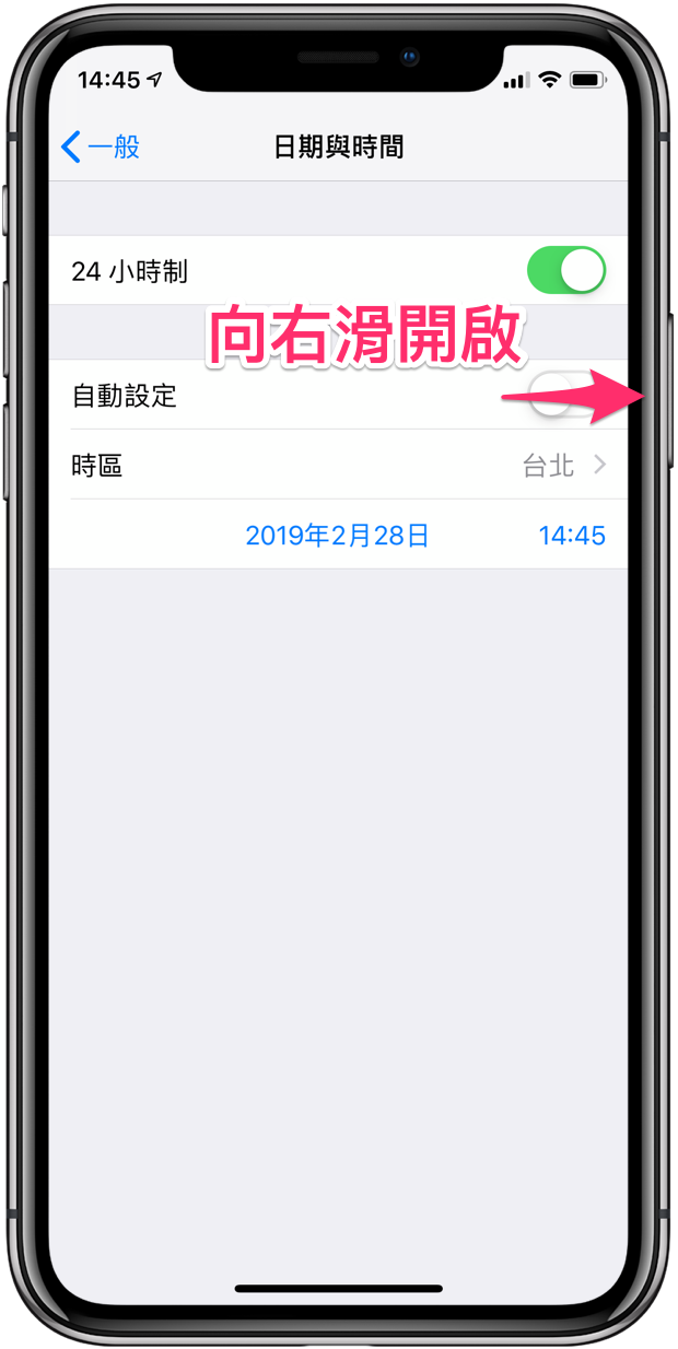 記得回到剛剛《設定》中的「日期與時間」,將【自動設定】的按鈕向右滑動重新「開啟」,否則有可能影響到日期時間相關功能的運行喔!會有無法連結 App Store、照片拍攝時間失真、行事曆、鬧鐘設定⋯等問題出現。
