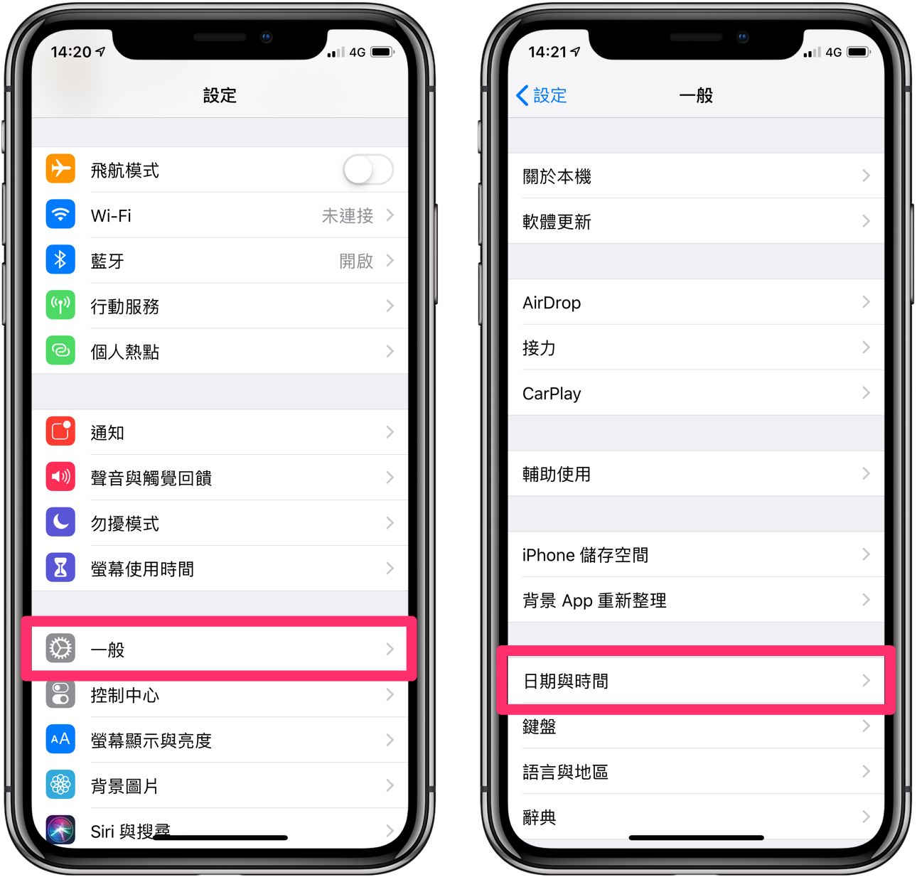 將日期與時間的【自動設定】右方按鈕向左滑動「關閉」,接著點下方出現的日期時間項目。