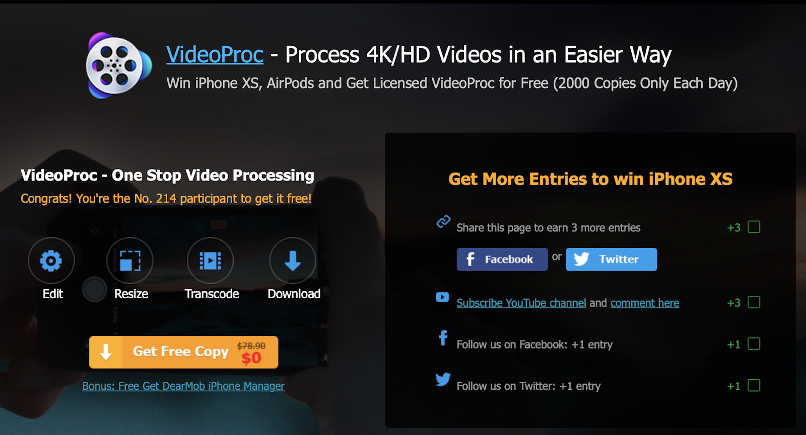 VideoProc 活動再加碼! iPhone XS 當頭獎!!