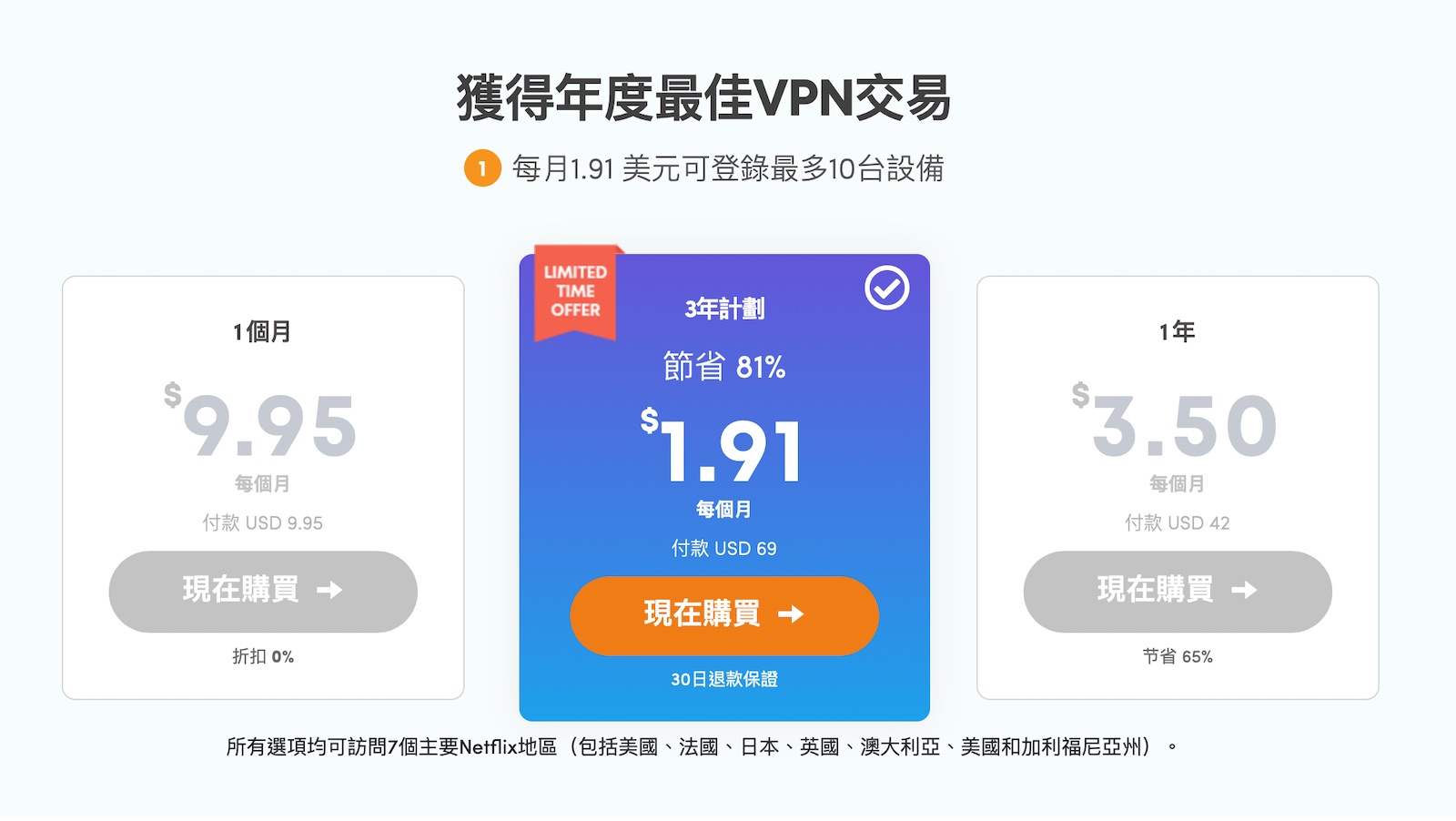 剛好最近雙 11 活動開始,活動期間最高享有 81% 的折扣,等於每個月只要 1.91 美元,大概不到新台幣 55 元,就可以讓你跨區訂閱便宜的 YouTube Premium 和 Netflix,看台灣還沒推出的 Disney+ 和 Hulu,下載 BT 更快更安全,如果是中國和香港朋友更棒了,還可以翻牆和逃離言論審察,好處多多啊!