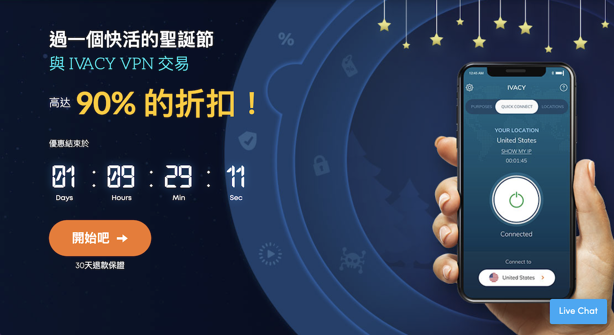 IvacyVPN 聖誕節 1 折優惠