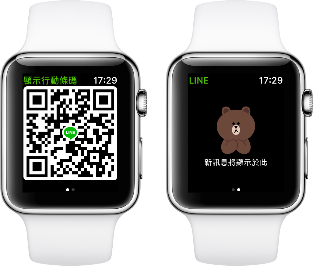 安裝並進入 LINE 的 watchOS 版後,就可以看到左邊的頁面是「行動條碼」,方便直接加好友用;右邊的頁面則為新訊息的對話記錄。