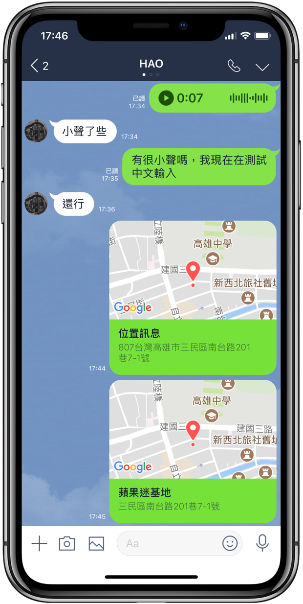 如果是選擇地標的話,在對話中也會直接秀出來,相當方便。